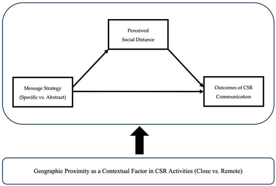 Moreover, the present study seeks to fill the gap in the literature on CSR communication in the context of message specificity and the role of perceived social distance, assuming that consumers do not simply accept CSR messages but instead interpret them according to their perceived social distance. Although previous research has demonstrated the role of social distance as a mediator in influencing brand equity [50], the literature has not sufficiently demonstrated the impact of different types of CSR message specificity on the outcomes of CSR communication along with a mediating factor, such as perceived social distance to CSR campaigns. Accordingly, we focus on the mediating role of perceived social distance in the interplay between message specificity and consumer perceptions and behavioral intentions as outcomes of CSR communication. Therefore, we propose the following hypotheses: