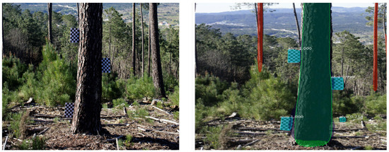 Coelho et al. [6] also proposed a method to estimate Corsican pine wood volume. They proposed methods to automatically calculate the diameter, height, and wood volume of a tree, based on a photograph with a partial or complete view of the tree and a specially designed target behind the tree. They used computer vision methods to separate the tree from the background, thus obtaining the tree’s diameter. Using that value and a hypsometric relationship, they calculated its height, which then allowed them to calculate the tree’s volume.