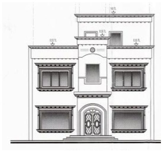 In Qatar, there are different types of residential buildings such as villas, Arabic houses, apartments, and other types of buildings. As of 2015, Table 1 presents the numbers of housing units in Qatar by the type and municipality. The villas make up the highest proportion (33.7%) of the building units in Qatar [49] which translates to 105,976 units. For this study, a typical two-story residential villa for a family seven persons is selected. The villa has a total floor area of 332.77 m2 distributed over five bedrooms, three bathrooms, two sitting areas, and other spaces. The architectural drawing of the front view of the selected villa is shown in Figure 4.