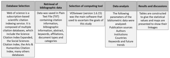The Web of Science database Core Collection (Thomson Reuteurs, Philadelphia, PA, USA) was used for this data-driven bibliometric analysis through a comprehensive literature review that has been used in thousands of published academic studies over the past 20 years, aiming to identify key indicators that can enhance future research [17]. WoS is one of the most transparent and dependable bibliometric tools and the most comprehensive scientific database for visualizing publications and conducting research analysis [18]. Compared to Scopus, Science Direct, and Google Scholar, Web of Science is one of the most comprehensive scientific databases, citation indexing services, and search engines [19]. It encompasses three citation databases, namely SCIE, SSCI, and A&HCI, along with international conference proceedings citation indices. Within its extensive database, the Web of Science covers a wide range of disciplines, including science, engineering, social sciences, and humanities, comprising over 34,000 journals, conference proceedings, books, patents, and data set records [19]. WoS is also a database that collects leading scientific publications and plays an important role in influencing academic decision-making [20].