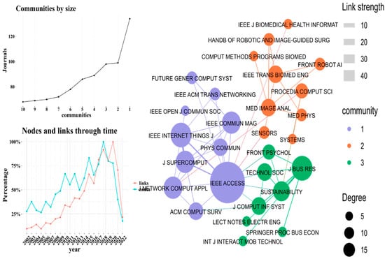 Finally, the last community (dark green) consists of authors from Croatia and Montenegro [85], who address the use of augmented reality in the context of automating electric substations. The authors explore how augmented reality can be applied to enhance the automation and monitoring of electric substations, leveraging the communication capabilities defined by the IEC 61850 standard [86]. This standard is widely used in the electric industry to ensure interoperability and data exchange between devices in substations. The article discusses the advantages of using augmented reality in this context, such as the ability to overlay relevant digital information onto the physical world of the substation, facilitating data visualization, decision-making, and real-time problem-solving.