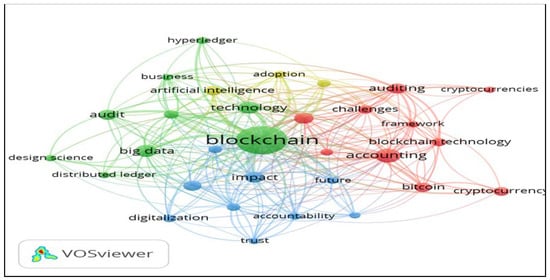The co-occurrence analysis presented in Figure 5 highlights the prominent keywords in scholarly discussions on the application of blockchain technology in accounting and auditing. These keywords, including blockchain, artificial intelligence, big data, accounting, audit, bitcoin, cryptocurrency, and smart contracts, have appeared frequently in academic publications, indicating their significance in the field. A comparison between Figure 3 and Figure 4 further underscores the central role of these keywords in intellectual discourse and research. Both Figure 3 and Figure 4 depict interconnections between countries, keywords, sources, and authors and show an overview of the primary research themes and sub-themes related to blockchain in accounting and auditing. Collectively, these findings suggest a focused and active academic pursuit in exploring the implications of blockchain technology in accounting and auditing practices.