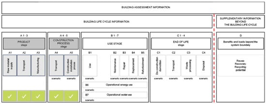 - EN 15978; Sustainability of Construction Works—Assessment of Environmental Performance of Buildings—Calculation Method. CEN: Brussels, Belgium, 2012.