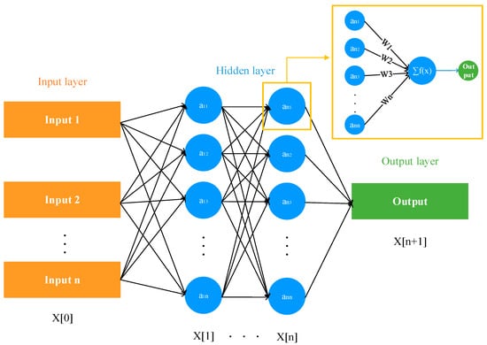 MLP is a part of ANN which can imitate the connections and transmissions among neurons in the biological brain in parallel. The smallest unit is called the artificial neuron [41]. As shown in Figure 1, the basic structure of the MLP model contains the input layer, the hidden layer and the output layer; with a few of the neurons, the neurons are connected with each other in terms of weight. The hyperparameters of the MLP model can be determined by different search strategies, such as grid search [43,44], random search and Bayesian search.