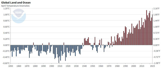The excessive depletion of Earth’s resources has given rise to significant environmental and energy challenges. As depicted in Figure 1, global land and ocean temperatures from 1901 to 2020 show a consistent trend [1]. It is evident that global temperatures have surpassed pre-industrial levels by 0.9 °C since the 1980s. Notably, densely populated regions are expected to experience temperature increases exceeding 2 °C, in stark contrast to sparsely populated areas. In 2015, the United Nations Framework Convention on Climate Change (UNFCCC) recommended measures to prevent global temperatures from exceeding the pre-industrial level of 1.5 °C [2]. In this context, a corresponding increase in energy consumption is anticipated due to the growing global population and the expansion of manufacturing industries. This surge in electricity usage has led to a significant resurgence of global greenhouse gas emissions, particularly in regions heavily reliant on fossil-fuel-based power generation [3]. The consequences of this continued energy consumption manifest as climate change, the greenhouse effect, glacial melting, sea-level rise, and related environmental issues. It is clear that energy consumption remains dominated by oil, coal, and gas. While greenhouse gas emissions have reached alarming levels, they are gradually decreasing thanks to the adoption of renewable energy sources [4]. The International Energy Agency (IEA) predicts that renewable energy sources will constitute 90% of the global economic focus within the next three decades [5,6,7]. This underscores the pivotal role of renewable energy sources in addressing energy consumption challenges. Among the abundant varieties of renewable energy sources, solar energy (SE) often comes to the forefront during discussions. Renewable energy sources can be harnessed on a global scale, with exceptions in extreme day and night conditions near the North and South Poles. Jordan, for instance, has successfully utilized solar power to meet 10% of its electricity needs, contributing to energy conservation [8]. However, replicating such widespread utilization of solar power may not be feasible in all regions due to inherent challenges, such as the intermittent nature of SE and the need for substantial photovoltaic (PV) infrastructure [9]. As global energy and environmental issues demand urgent attention, there is a pressing need to promote and develop environmentally sustainable systems.