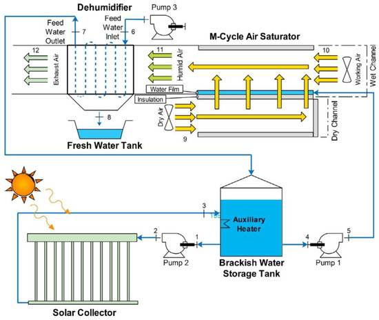 Schematic diagram of HDH system which employs SE and M-cycle [105].