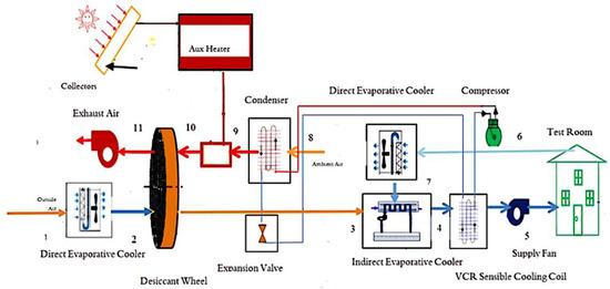 Schematic of the solar-assisted desiccant cooling system in ventilation mode [108].