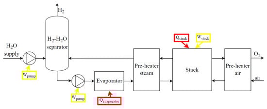 where Wirr is the electrical power due to the various irreversibilities. In commercialized stacks, electrolytic cells are assembled in series; thus, Equations (7) and (8) characterize the real stack voltage, Ustack, and the electrical current input to the stack, Istack: