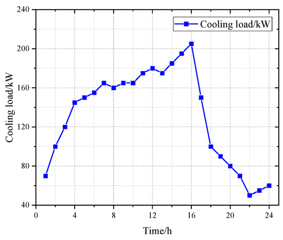 The cooling-load demand on a ship mainly originates from external infiltration heat and internal heat production. The external infiltration heat is mainly caused by the temperature difference between the external environment and the inside of the hull and is composed of two parts: high-temperature environment and solar radiation. On a clear and cloudless day, the intensity of direct solar radiation at a certain latitude perpendicular to the sun’s rays can be calculated as follows [36]: