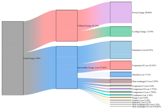 As this cycle is a combined cold-power cycle, it is capable of simultaneously producing power and cooling. The power outputs and cooling outputs have different energy grades. This study evaluates the performance of the combined cycle based on exergy using the comprehensive efficiency proposed by Zhang [28].