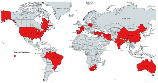 This section illustrates the ranking of countries based on the number of research related to the research keywords mentioned in Table 1 and Figure 3 shows the concentration of countries where the study was conducted: here, 59% were from Europe, followed by China, India, and Australia. The study addresses reverse logistics services, and each country has its own regulations and practices to address reverse logistics challenges; in addition, some countries achieved strides toward sustainability. Therefore, it is important to consider the nature of each country.