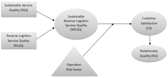 This study uses a conceptual framework to examine the effects of sustained service quality on customer satisfaction in order to explore and investigate the latter term. According to a prior study presented by Stamenkov et al. [71], sustainable service quality is the ability to deliver unbroken services with excellent sustainable quality SSQ for an extended period of time. On the other hand, prior studies show that RL practices and product return disposition decisions are crucial for implementing a sustainable business model, [72,73].