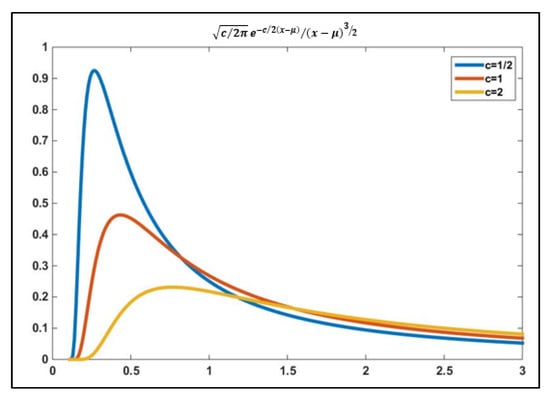 As the improved simulated annealing algorithm has the problems of weak search ability in the early stage and slow convergence in the later stage, this paper proposes to improve the probability function for accepting suboptimal solutions in the simulated annealing algorithm by using the Levy distribution method. The Levy distribution can be expressed by Equation (14), where Levy distributions vary with different values taken for C. Figure 3 shows the function distribution corresponding to different values taken for the constant C. The figure indicates that regardless of the value taken for C, the range of function values of Levy distribution is [0,1]; as the independent variable increases, the function values increase rapidly, then decline slowly and level off, and finally stabilize at around 0.1. With the increasing value of C, the maximum of the function declines.