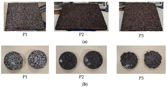 - P3, leather cutting waste panel with ECHO PU 249/F glue [26], composed of leather scraps (1.3 kg), ECHO PU 249/F glue (0.65 kg, 50% by weight of the leather), and distilled water (0.24 kg, 18% by weight of the leather). The glue used is a water-based polyurethane adhesive.