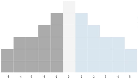We collected the data for this study using a paper version of the 40 bilingual statements. The first two authors were available during the sorting activity to give directions and clarifications in response to the following question: How important are the following teacher competencies for pre-service teachers to implement ESD in Qatar? Participants were instructed to first provide their demographic data (see Table 2). Next, they rank-ordered the statements by assigning each one a hierarchical position from “least important” (−5) to “most important” (+5) on a forced-choice, quasi-normal, and symmetrical distribution grid (see Figure 1 for an example). By applying their subjective views, participants constantly compared the relative importance of each competency, resulting in a single holistic configuration. Lastly, we instructed participants to elaborate on their decisions through a post-sorting survey with open-ended questions. Specifically, they explained their reasoning behind sorting the statements ranked as the most important and those ranked as the least important, respectively.