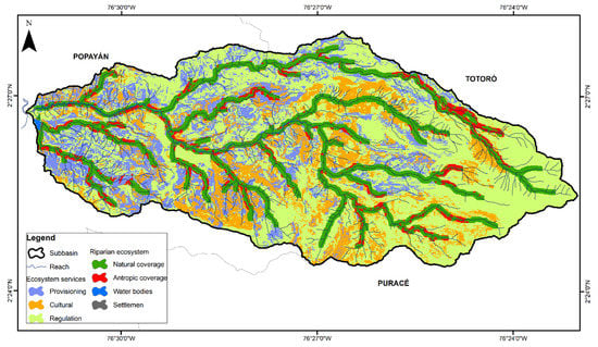 Agriculture practices in the UCRB includes deforestation, slash, burn, and the overuse of agrochemical inputs, that affects WES supply, limiting the water availability for local communities [9,10,11]. These conditions are represented in LPRB, a water supply basin in the southwest of Colombia, which provides multipurpose water for rural communities and drinking water for urban areas where socioecological conflicts around water management are presented.