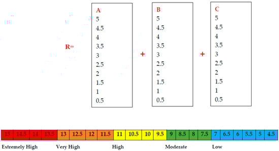 Risk: A + B + C = magnitude of risk, according to the following tables [10].