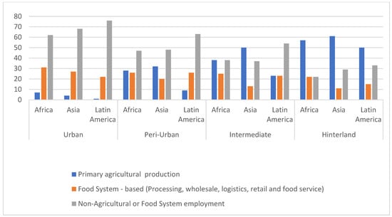 - Dolislager, M.; Reardon, T.; Arslan, A.; Fox, L.; Liverpool-Tasie, S.; Sauer, C.; Tschirley, D.L. Youth and Adult Agrifood System Employment in Developing Regions: Rural (Peri-urban to Hinterland) vs. Urban. J. Dev. Stud. 2021, 57, 571–593. [Google Scholar] [CrossRef]