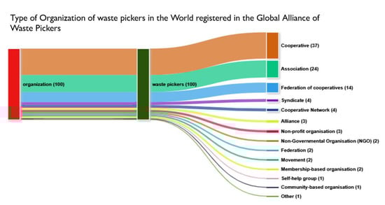 The following tables and Sankey diagrams have been prepared for graphic representation of the organization of waste pickers in Latin America (see Figure 1).