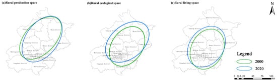 Elliptical changes of the spatial standard deviation of rural PEL space in Beijing from 2000 to 2020.