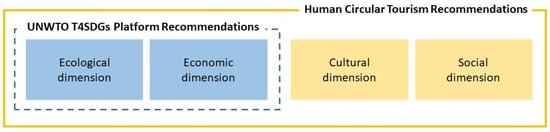 Despite the utility of the UNWTO platform, some critical aspects emerge. The recommendations by UNWTO are presented as suggestions, but no operational tools are provided for implementing them. For example, a multidimensional evaluation framework (including the four dimensions of sustainable development) is not provided and thus the platform is lacking a tool that is able to provide empirical evidence about the concrete contribution of tourism to the achievement of Sustainable Development Goals. Therefore, there is a lack of explanations as to why and how a specific action contributes to the achievement of a certain Sustainable Development Goal. This aspect is crucial if the behavior of different actors is to be concretely oriented in a more sustainable and circular perspective. Expressing the recommendations in summary form, without highlighting the possible effects of each of them with respect to the SDGs, does not improve the awareness of each actor about their role and responsibility in the transition to a more sustainable tourism.