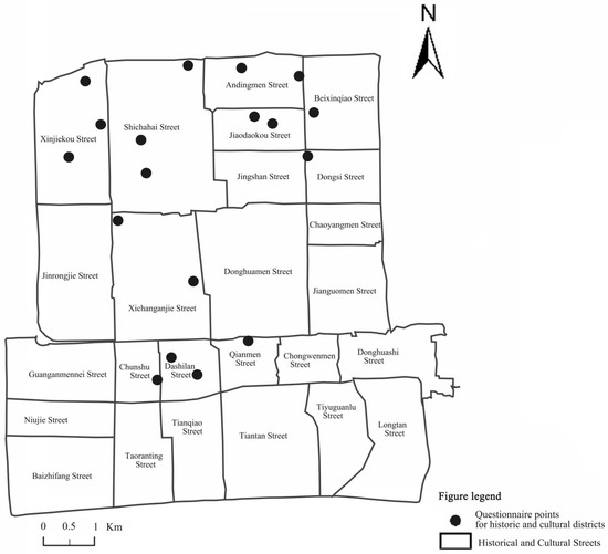 Data support for this work comes mainly from the social satisfaction survey of the 2019 Beijing City Health Examination carried by Beijing Municipal Commission of Planning and Natural Resources, which uses the subjective satisfaction of residents as a measurement scale of urban living environment and is complementary to the traditional evaluation consisting of only physical indicators. The survey contains more than 10,000 valid questionnaires gathered from across the city. Among them, 600 questionnaires were taken from the historical and cultural district of Beijing’s old city for the purposes of this study. The main object of the survey is mainly the resident population of individuals over 16 years of age. The main target of this survey is defined as “permanent” Beijing residents, i.e., those who have lived in Beijing for more than six months uninterruptedly. The questionnaire methodology includes sample surveys, community intercepts, and household surveys. Stratified sampling was used in equal proportion to the size of the street population. The questionnaire distribution specifically used a combination of methods including equidistant random sampling, convenience sampling (community intercept and household survey), and cross-control quota (gender, age) sampling.