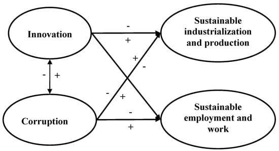 This work seeks to increase comprehension of the different relationships among innovation, corruption, and sustainability, while attempting to broaden the scope beyond those indicated above. In summary, the purpose of this study is to show that the distinction between positive and negative effects of two key forces on sustainability is not always so obvious, theoretically supporting the following arguments: