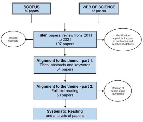 To ensure relevance, the filters for “article” and “review,” and the period from 2011 to 2021 were used. The chosen period had to be broader in order to include the more traditional articles in the portfolio. The studies, however, were only included if they presented a positive inOrdinatio index resulting from the applied equation [].