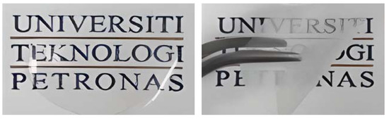 Figure 1 demonstrates the physical appearance of the fabricated CM. It was observed that the fabricated CM was transparent and possessed good mechanical properties. The produced CM were free of cracks, resilient and flexible due to the higher composition of Pebax-1657 polymer than SAPO-34 zeolites in the formulation of CM. Soft PEO block in Pebax-1657 has a strong affinity for CO2 and is very permeable. The membrane’s structure and mechanical strength, on the other hand, are provided by a hard block of a semi-crystalline polymer. For CM, soft PEO blocks are also taken into account for the compatibility of the polymer matrix with an inorganic filler placed in it. This compatibility mainly results from PEO’s strong chain mobility and the ether oxygen in its chemical nature.