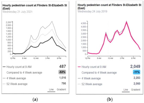 (a) Flinders Street underpass pedestrian count, 2021 [37] (b) Flinders Street underpass pedestrian count, 2019 [36].