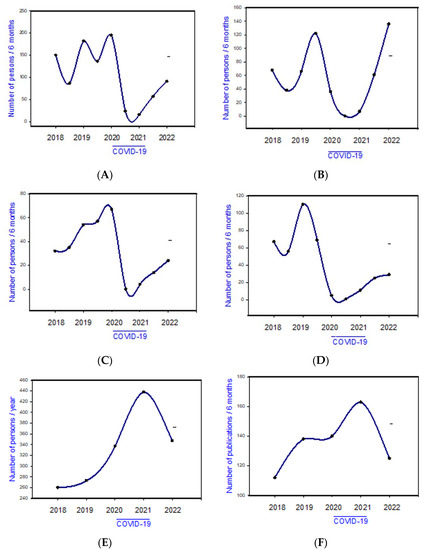 We analyzed data for 2018, 2019 (before the start of the pandemic and the application of pandemic-induced restrictive measures), 2020, 2021 (the time of the pandemic), and the first 6 months of 2022 (after the end of the massive pandemic and the abolishment of pandemic-induced restrictions) with 6- or 12-month intervals. All the obtained data were processed and presented in graphic form using SigmaStat/SigmaPlot 11.0. software (Systat Software, Erkrath, Germany).