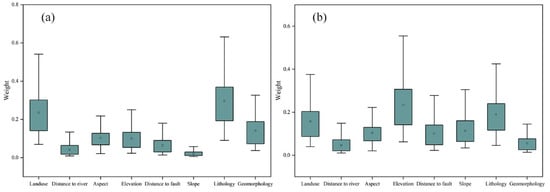 At present, there is no consensus on which landslide-influencing factors should be involved in the model design process [40]. In this study, based on site characteristics (from the field mapping report), data availability, previous research [41,42], and communication with local experts, the causative factors are determined from the geological aspect (lithology and distance to faults), morphological aspect (geomorphology, aspect, elevation, slope), hydrological aspect (distance to river), and land cover aspect (land use). According to the statistical analysis of causative factors, the factors selected above are all frequently used causative factors for modeling by LS researchers [10,43].