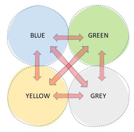 3.3. Blue-Green-Yellow-Grey Conflicting Areas