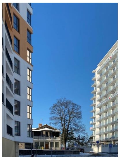 Increased tourist traffic and the decreasing resources of construction areas for new facilities intended for tourist services have made investors look for new solutions and opportunities for tall and high-intensity development. The gradual change of the development paradigm, from guesthouses with several stories floors to high-rise buildings with a hotel or apartment function, has made significant changes in the seaside landscape in the research area [24].