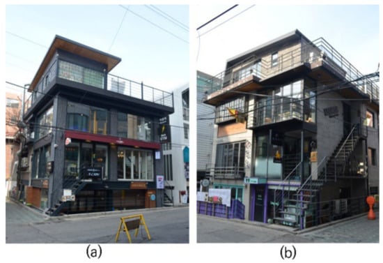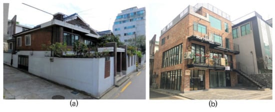 (a) Buildings of 383-23 Yeonnam-dong; (b) buildings of 383-72 Yeonnam-dong.