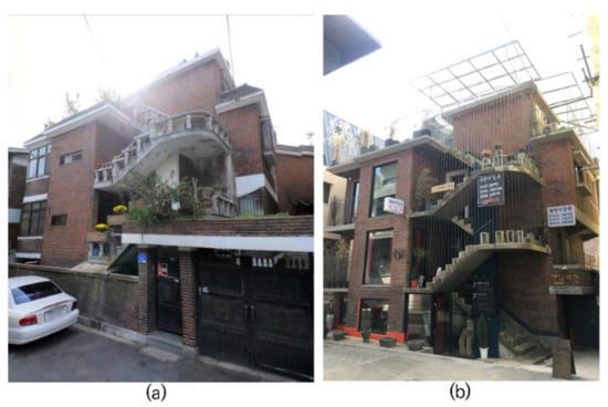 (a) Pre- and (b) post-renovation pictures of the building at 249-8 Yeonnam-dong.