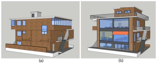 (a) Pre- and (b) post-renovation pictures of the building at 147-48 Donggyo-dong.