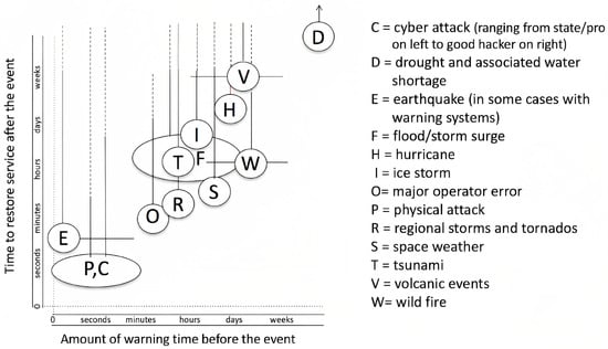 - Duffey, R.B.; Ha, T. The probability and timing of power system restoration. IEEE Trans. Power Syst. 2013, 28, 3–9. [Google Scholar] [CrossRef]