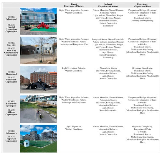 Examples of multiscale biophilic design for children’s health and well-being in Copenhagen (photos by Maria Beatrice Andreucci).