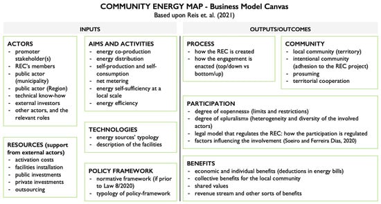 58]. In this sense, the framework ‘per canvas’ is also aimed at identifying the challenges that each REC project is called upon to address, proposing alternative solutions to the energy market.