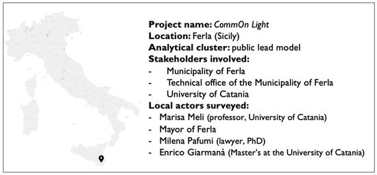 Case studies for the ‘public lead partner model’: CommOn Light project in Ferla (Sicily); Kennedy S.r.l. in Inzago (Metropolitan City of Milan); Energy City Hall project in Magliano Alpi (Piedmont).