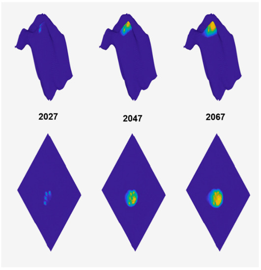 The impact of the caprock elevation on the plume migration in Bunter seemed to be less significant than in Sleipner [20,21,25]. The reason could be that Sleipner has a small-scale caprock morphology. Therefore, small topography changes would alter the migration path. However, in the Bunter model, the plume migration path is mainly controlled by a dome-shaped topography with large amplitudes. Therefore, changing the elevation within a small range would not have as much impact as the Sleipner model. Uncertainties in porosity had a minimum impact on the plume dynamics. Whilst the level of perturbations and reservoir characteristics might have affected the outcome, similar results were observed in the Sleipner model [20,21,25].