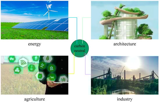 Carbon neutrality is a common international goal and trade. Many scholars have conducted research focusing on the goal of realizing carbon neutrality. Tattini, J. contributed to the scientific literature by analyzing the long-term decarbonization of the Danish transport sector using energy, economic, environmental and engineering models []. Chemical neutralization of carbon dioxide was analyzed by Fukushima, T., who demonstrated a carbon-neutral energy cycle using glycolic acid or oxalic acid redox pair []. Noterdaeme, P. has studied a very effective method of finding high metal molecular absorbents with CI-containing absorbents, and the absorbents he studied can effectively alleviate the expansion effect of carbon dioxide []. Tew, D. E. described the overall integrated synergy that can be achieved in a hybrid system consisting of a solid oxide fuel cell and an engine bottom cycle []. Zhang, S. C. analyzed the contribution of near-zero energy building standards to China’s 2060 carbon emission target in urban areas by combining a carbon emission model with a bottom-up mid and long-term energy consumption model []. However, their research only focused on carbon dioxide emissions and did not pay attention to the impact of energy replacement on carbon neutrality.