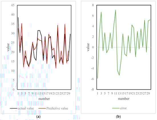 Multiple Regression Prediction Results: (a) Comparison of Actual Value and Predicted Value; (b) Error value.