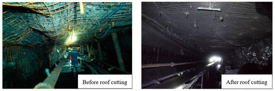 In summary, from the simulation results, it can be seen that when the roof-cutting height is 4 m, 6 m and 8 m, the roof has different degrees of hang, separation and collapse. When the roof-cutting height is 8 m, the direct roof completely collapses better than 6 m. From the data analysis, the increase of the roof-cutting height is easy to reduce the peak stress of the solid coal wall, the peak area moves to the deep, and the peak stress of the coal pillar also decreases, which is conducive to the stability and maintenance of the roadway. When the height of roof-cutting is increased to 10 m, the influence of the height of roof-cutting on the roadway is not obvious. Therefore, according to the simulation, the optimal height of roof-cutting is 8 m.