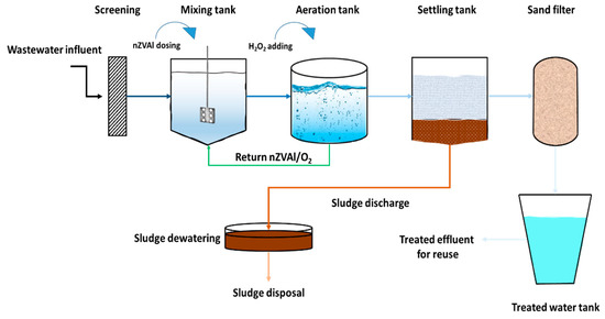 Process flow diagram of the proposed treatment unit of heavy metals-contaminated industrial wastewater using nZVAl.