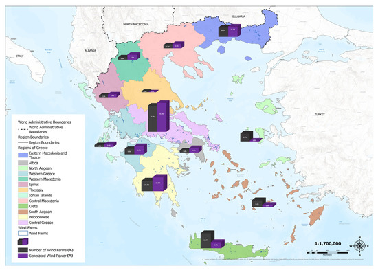 The first stage aims to spatially analyze the details and spread of the existing wind farms in the country, which include the number of wind farms, the wind power, the year of operation, and the number of wind turbines. Data are retrieved from [38] and are elaborated with the use of geographic information systems (GIS) and Microsoft Excel.
