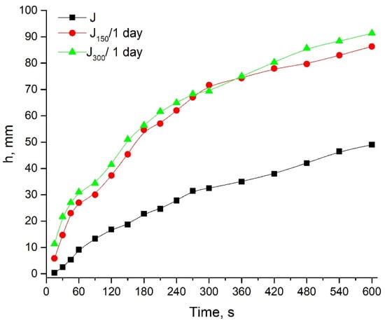 where h (mm) is the increase in capillary rise height, and t (s) is time.