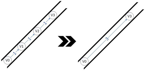 The disadvantage of the Dijkstra algorithm is that the time complexity will increase rapidly once the scale of nodes in the problem increases. Therefore, for large-scale problems, in order to simplify the problem, it is necessary to rewrite the original traffic network diagram without changing its traffic logic [37].