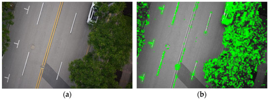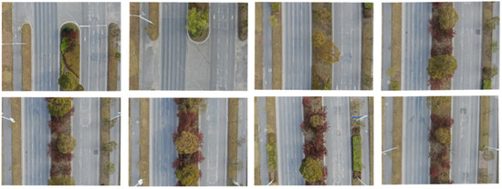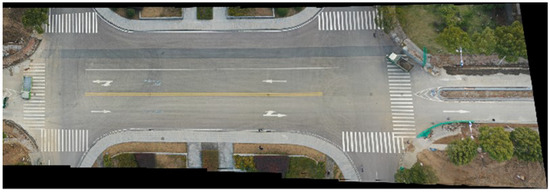 Furthermore, in order to ensure satisfying image stitching results, it is necessary to ensure that the lens is perpendicular to the road when shooting. Therefore, the pitch angle of the UAV was set to 0° and the pitch angle of the gimbal(camera) to 90° (perpendicular to the road) when shooting in this study.